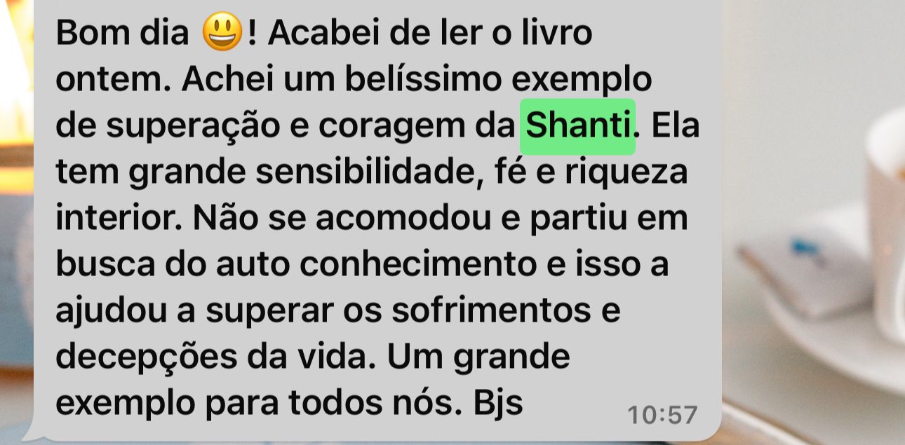 Aproveite a oportunidade para adquirir o livro de Shirley Brandão, lançado no Brasil, Nova York e Londres, “O Caminho de Shanti - O Perdão Muda Tudo” é um livro recomendado por terapeutas e psicólogos. Lançado em 2019 já está em sua segunda edição.